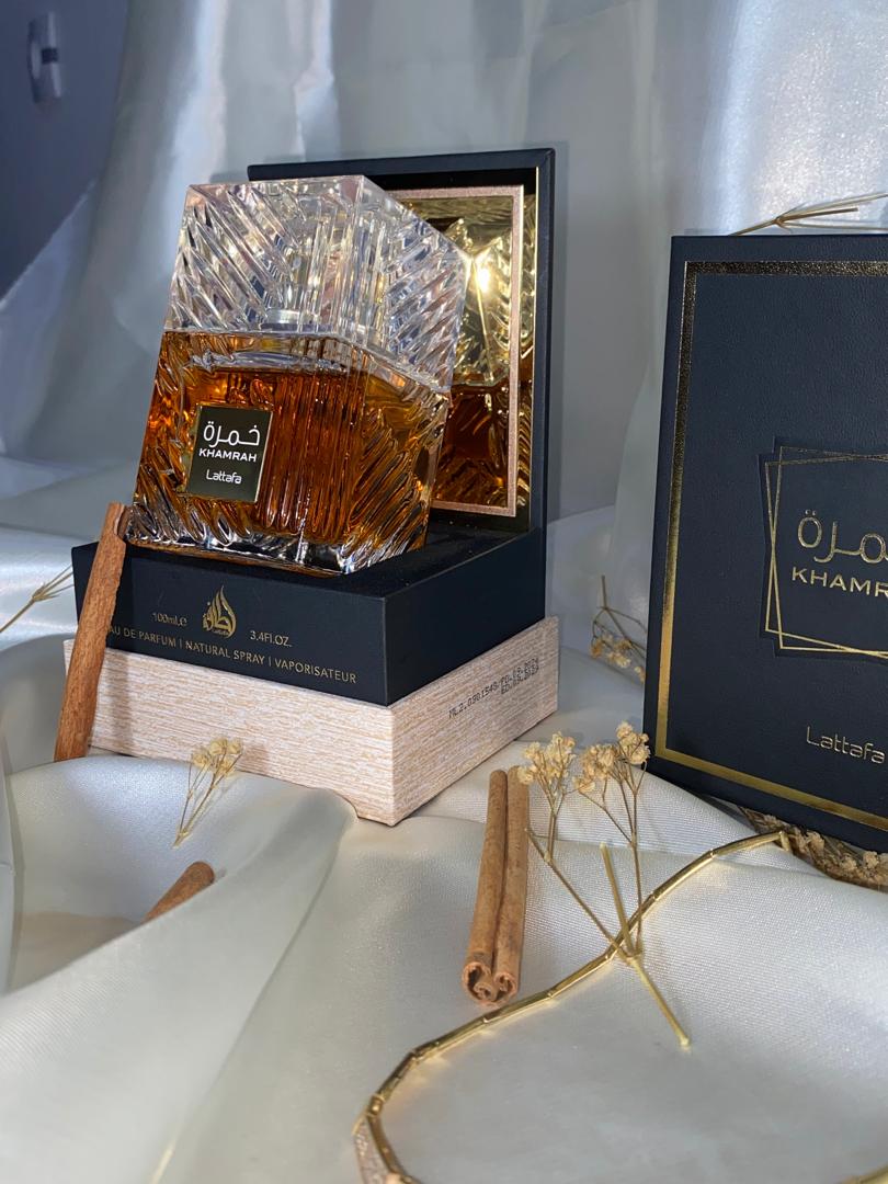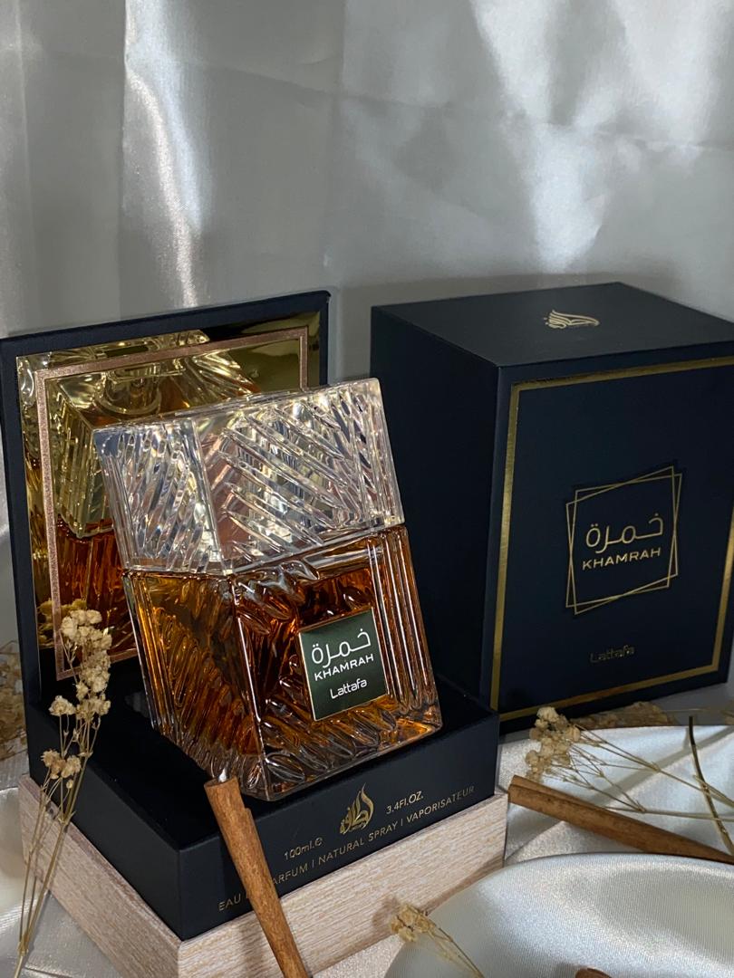 Notes olfactives : bergamote, noix de muscade, cannelle, dattes, mahonial, praline, tubéreuse, myrrhe, fève tonka grillée, vanille, benjoin, ambre, bois d'akigala